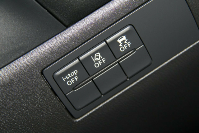 It has autonomous emergency braking (AEB) ? which is standard across the model range and in this spec the system has radar cruise control and high-speed AEB, too. The Mazda?s AEB system also works in reverse, meaning it?ll stop the car if it thinks you won?t, and there?s rear cross-traffic alert as well.